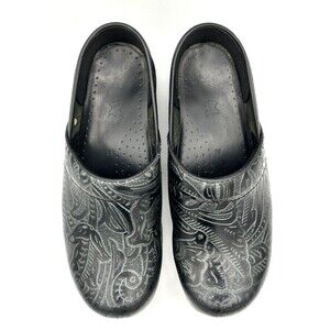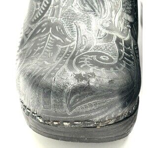 Dansko Professional Clog Black Antique Tooled Women's EU sizes 39 (US 8.5) EUC
