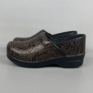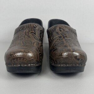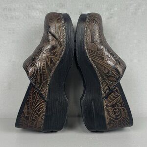 Dansko Professional Clogs Shoes Leather Tooled Embossed Women 38 US 8 Brown