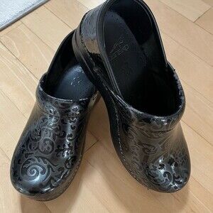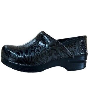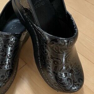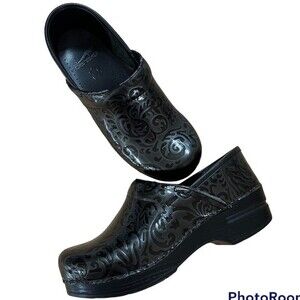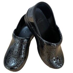 Dansko Professional Patent Tooled Leather Clogs in Black 36