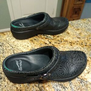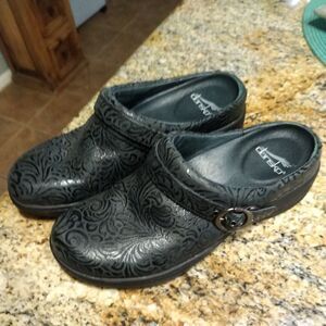 Dansko Professional Professional Black Tooled Leather clogs size 37 EUC.