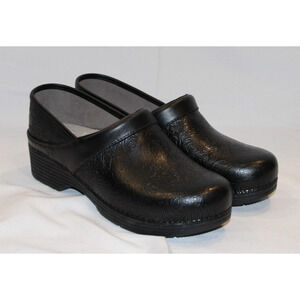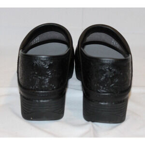 Dansko Professional Women's Black Tooled Filigree Leather Clogs US 11 NEW