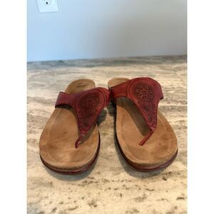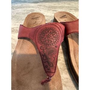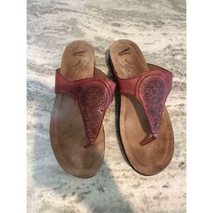 Dansko Pryia Red Tooled Leather Sandals Flip Flops Size 9.5