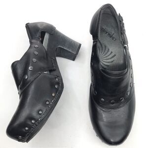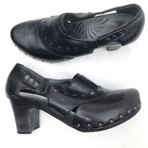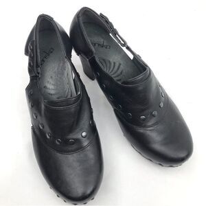 Dansko RYDER Black Leather Studded Heeled Platform Clogs