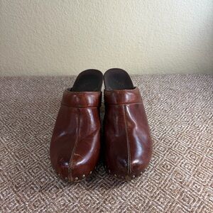 Dansko Rae Women’s Brown Leather Studded Heels Clogs Sz 38 US 7.5-8 Boho Grunge