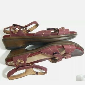 Item: Women's Dark Red Low Heeled Sandals - Adjustable Straps across foot and at ankle