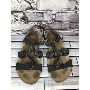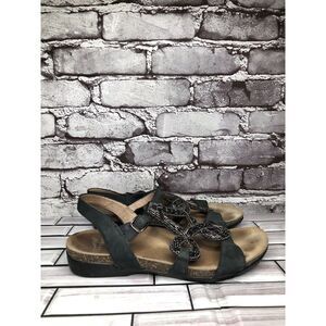 Dansko Reeta Black Leather Jewels Beads Strappy Cork Sandals Women Sz 37EU/6.5US