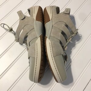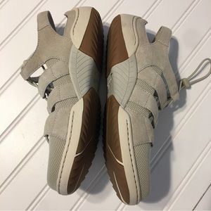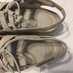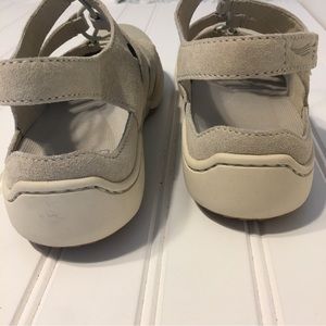 Tan flats closed toe, with Velcro heel strap new, no tags size 38 ivory suede leather
