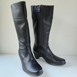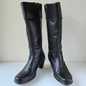 Dansko Risa Tall Leather Low Heel Black Riding Knee High Boots w FLAW Size 39
