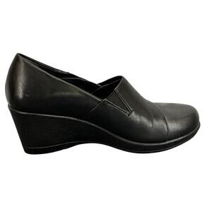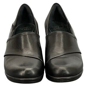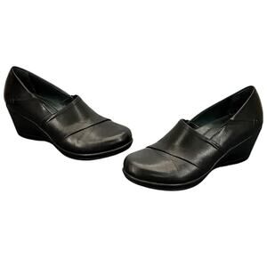 Dansko Rosaline Black Leather Slip On Comfort 3" Wedge Loafer Women 7/38