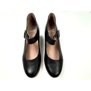 Dansko Roxanne Black Mary Jane Heels Women 11 NWOT Burnished Nubuck Leather Clog