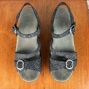 Dansko SANDI Shagreen Black Leather Ankle Strap Sandals size EUR 39 US 8.5/9