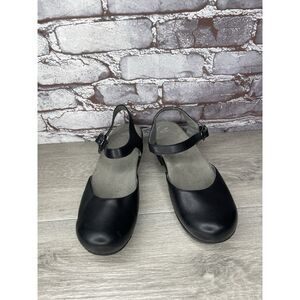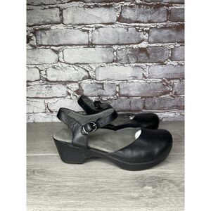 Selling Dansko Sam Black Leather Ankle Strap Mary Jane Clog Sandals Women Sz 38EU/7.5M US
