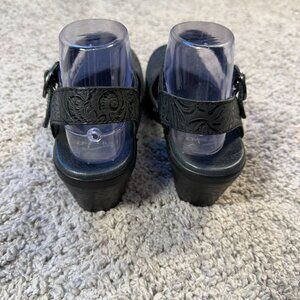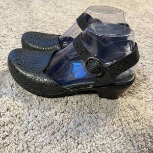 Dansko Sam Mary Jane Black Embossed Leather Womens 38 Sandal Ankle Strap