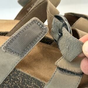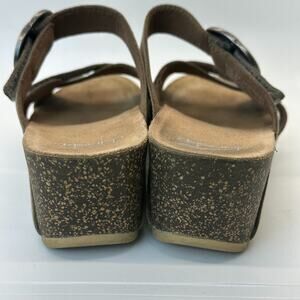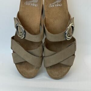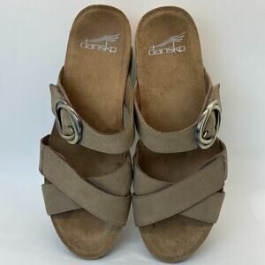 Dansko Sandal Womens 37 Taupe Strappy Cork Leather Wedge Comfort Nubuck Susie