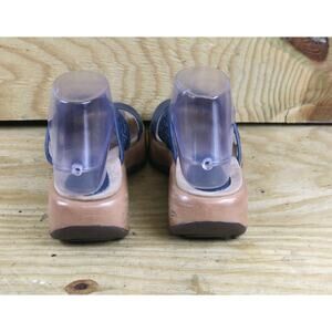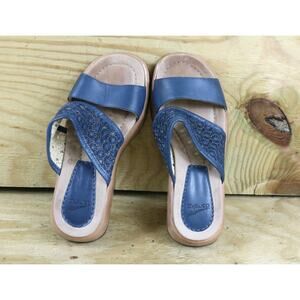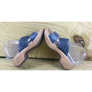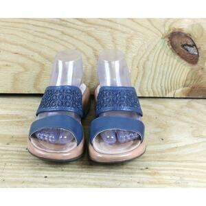 Dansko Sandals 36 Womens 5.5 Blue Leather Lydia Laser Cut Wedge Slip On Shoes