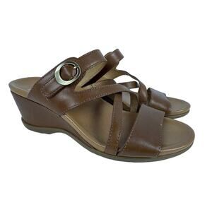 Dansko Sandals Ana Women's US 8.5-9 Leather Brown Glazed Open Toe Wedge Slip On