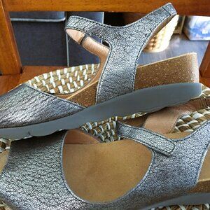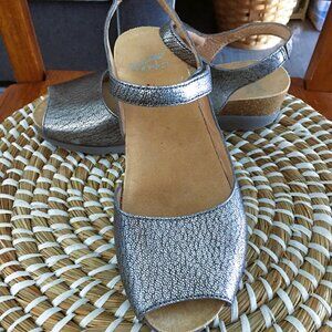Dansko Sandals Sz 7.5 - 8 (Euro 38) Marcy Wedge sandals in metallic pewter NWOB