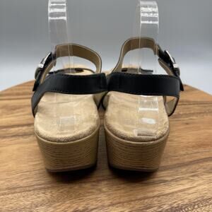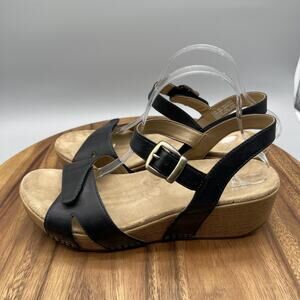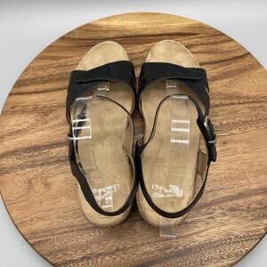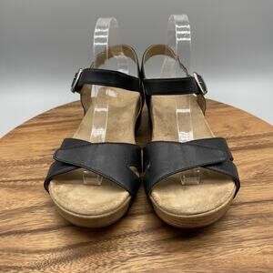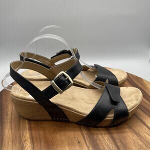 Dansko Sandals Womens 11.5/42 Black Leather Wedge Slingback Comfort Shoes Buckle