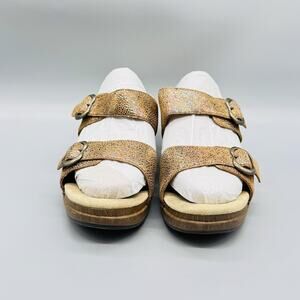 Dansko Sandals Womens 9.5 Gold Sophie Wedge Slide Double Buckle Strap Comfort
