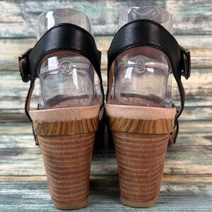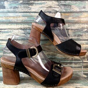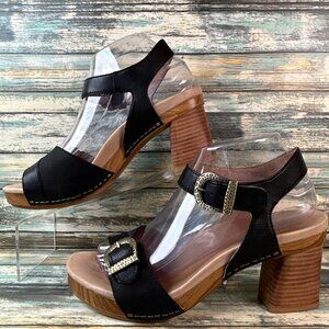 Dansko Sandals Womens Anna 7.5-8 Black Leather Dress Silver Buckles Block Heel.