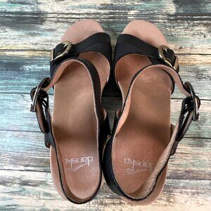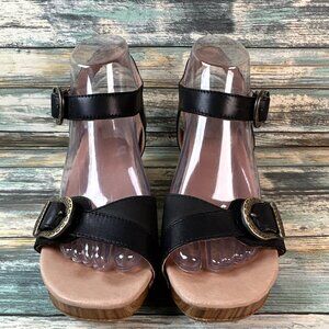Dansko Sandals Womens Anna 7.5-8 Black Leather Dress Silver Buckles Block Heel