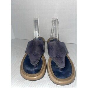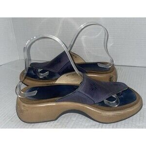Dansko Sandals Womens US 8 Slide Blue Leather Slip On Wedge Flip Flop EU 38