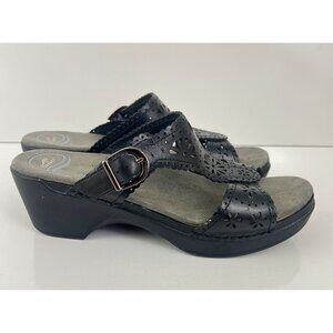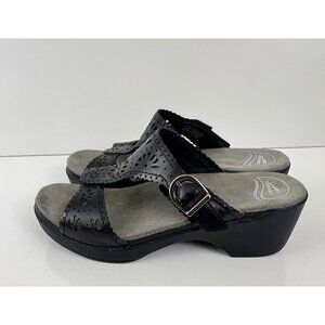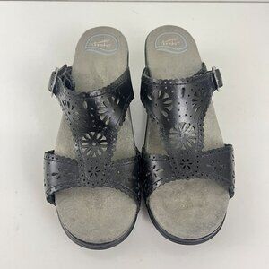 Dansko Sapphire Women's Black Cut Out Leather Clog Sandals Size 10.5-11 EUR 41