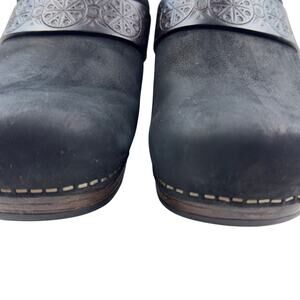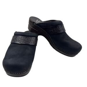 Dansko Saundra Black Embossed Leather Comfort Slip On Mules Women's 40/9.5-10