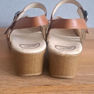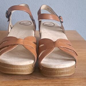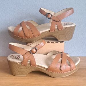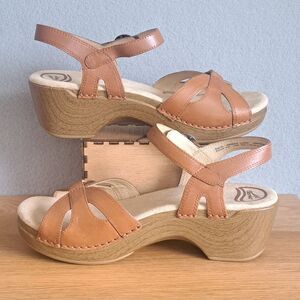 Dansko Season Camel Full Wood Grain Leather Sandals Women's 9.5 US 40 EU Comfort Boho Wedge 416