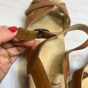 Dansko Season Sandals Camel Brown Leather Strappy Wedge Women's size 39 / 8.5