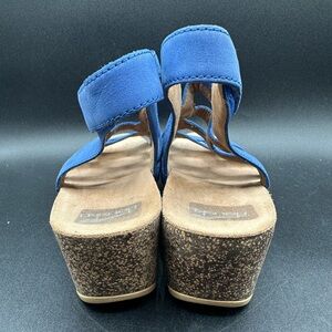 Dansko Selina Cobalt Blue Milled Nubuck Leather Cutout Wedge Sandal EU 41
