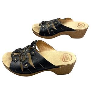 Keywords: Dansko, Serena, Brown Leather, Wood Wedge, Open Toe, Mule, Sandal, Women, 9/40