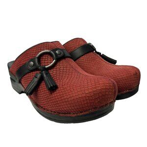 Dansko Shandi Clogs Womens EU 40 US 9.5-10 Red Leather Snake Print Slide On Shoe