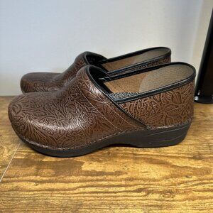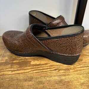 Dansko Shoes Womens 10 EU41 XP 2.0 Brown Floral Tooled Leather Clogs Mules