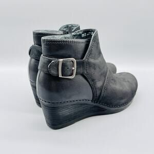Dansko Shoes Womens 7.5 Black Leather Booties Shirley Wedge Ankle Buckle Zip