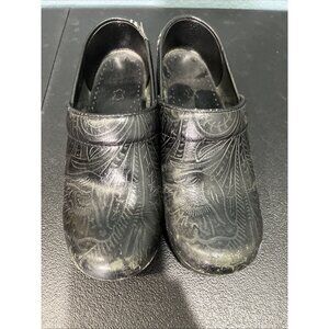 Dansko Shoes Womens Sz 37 Black Tooled Leather Clogs Comfort Nursing Non Slip