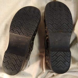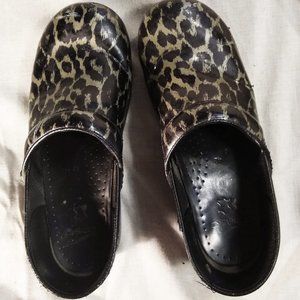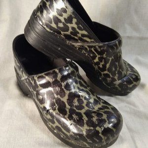 Dansko Silver Leopard Patent Leather womens clogs, size 42