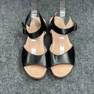 Dansko Silvie Platform Sandals Women's 9.5 Black Leather Buckle Starp Open Toe