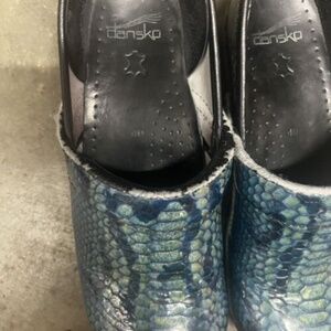 Dansko Size 40 Professional Slip On Clogs Blue/Green Reptile Animal Print
