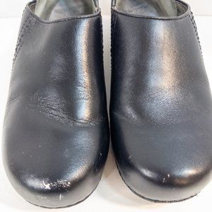 Dansko Size 40 (US 9.5) Tamara Clog Black Leather Slip On Nursing Heeled Shoe