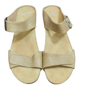 Dansko Size 42 Leather Wedge Sandals Nude Beige Comfort Slip On Adjustable Strap