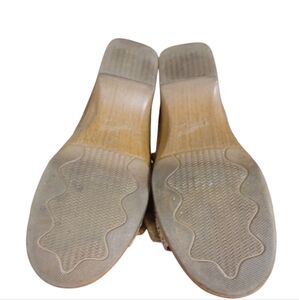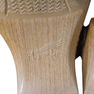 Step into elegance with Dansko's tan and taupe snake embossed sandals featuring a textured wide strap and a stylish wedge-like heel. These shoes offer a perfect blend of comfort and sophistication, making them ideal for any occasion. The light-colored sole adds a touch of modern flair to your ensemble.