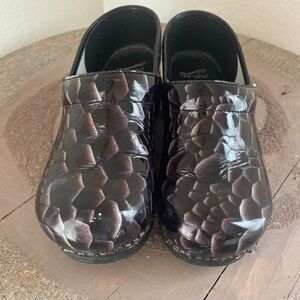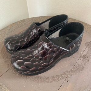 Women's Dansko Snakeskin Patterned Professional Heeled Clogs EU 42 11.5/12 Black Work