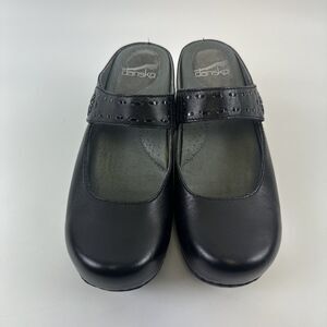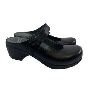 Dansko Solitaire Mary Jane Mule Black Leather Slip On Whitpstich Womens 38 7.5