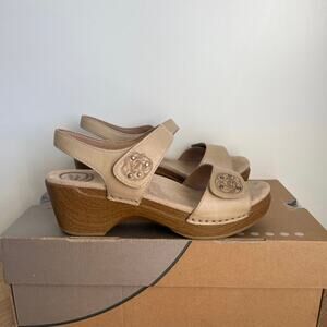 Dansko Sonnet Beige Leather Floral Slingback Women Sandal- SZ EU 37 /US 6.5/7