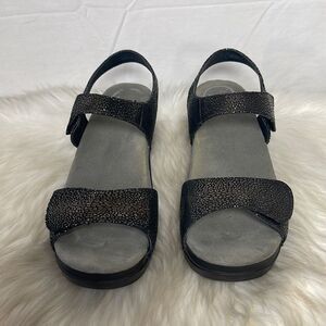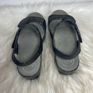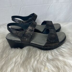 Dansko Sonnet Black Leather Shimmer Platform Sandals Sz 41/11