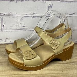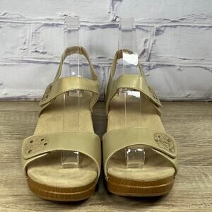Dansko Sonnet Floral Leather Sandals Size 41 US 10.5-11 Slingback Sand Tan Clogs