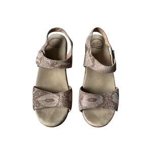Dansko Soonet Metallic Snakeskin Strap Sandals size 39 US 8.5 9 Tan Cream