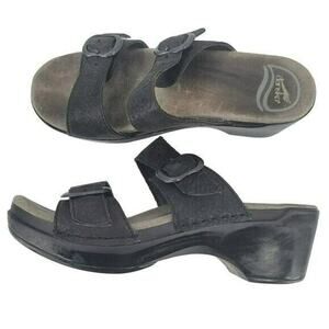 Dansko Sophia Sandals Grain Leather Black Size 10 Comfort Shoes Work Vacation 36