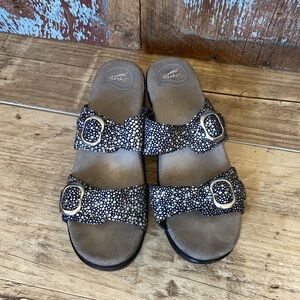 Dansko Sophie Black Shagreen Leather Sandal Slide Black Metallic Women's 40